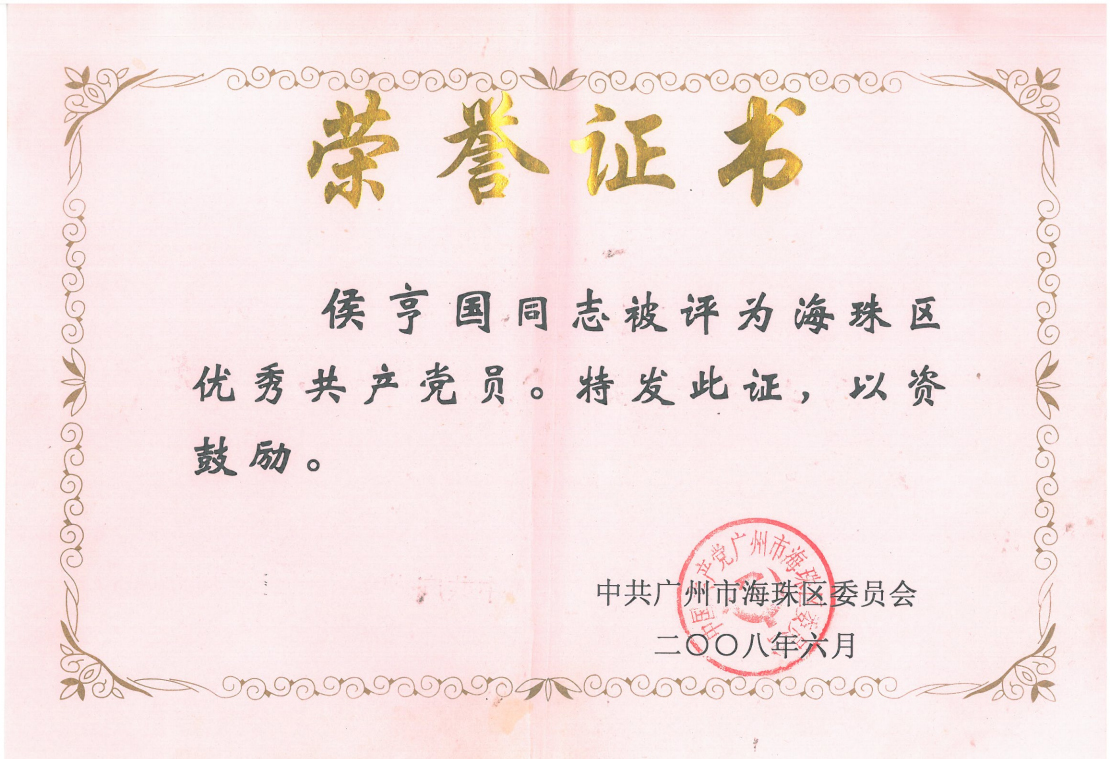 附:侯亨國經(jīng)理一部分事跡及榮譽表彰。