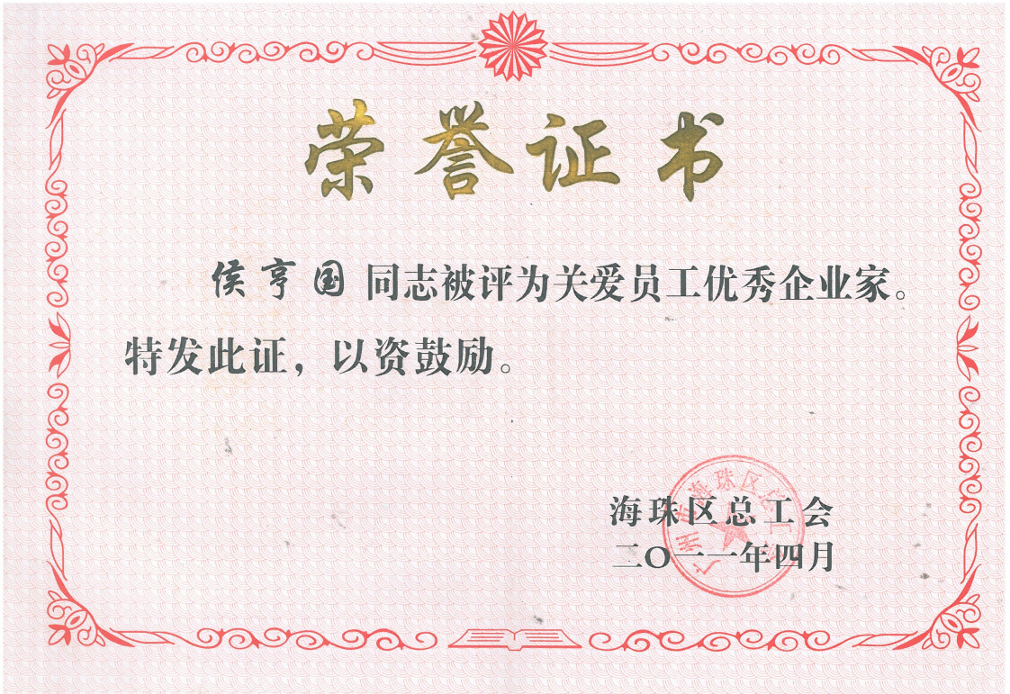 被評為關(guān)愛員工優(yōu)秀企業(yè)家